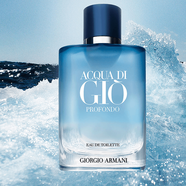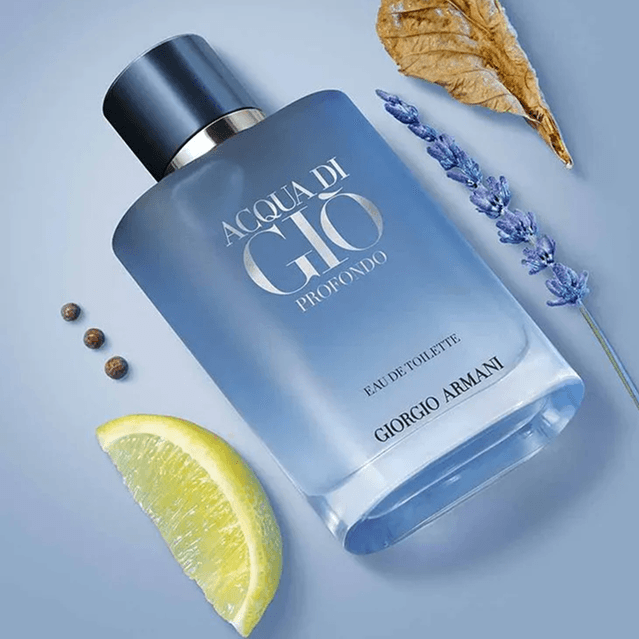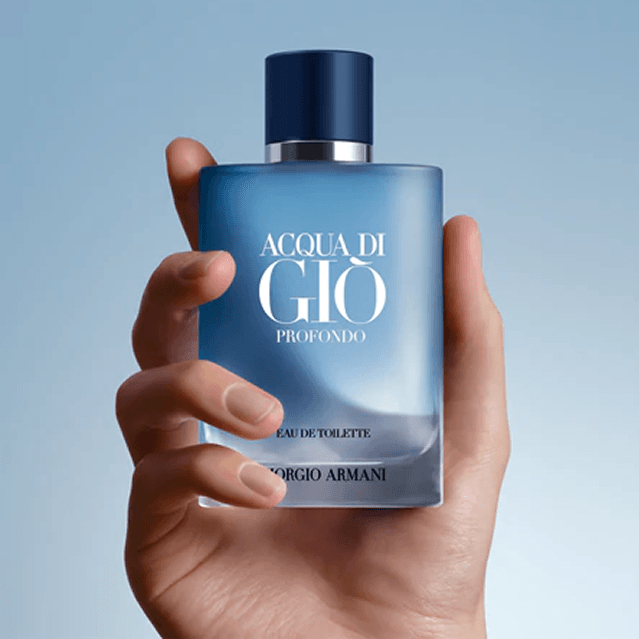 Acqua Di Giò Profondo Eau De Toilette, é um perfume fougère aromático. Especiarias e essência de limão abrem o aroma, criando um contraste fresco com a lavanda. O acorde aquático, assinatura clássica de Acqua Di Giò, define o coração dessa fragrância, enquanto o poder do mar é reforçado por um patchouli defumado e um acorde mineral amadeirado. Uma sinfonia de azuis define o novo Acqua Di Giò Profondo Eau De Toilette. O tom azul claro graduado do frasco evoca as profundezas frescas do oceano, realçado pela elegante tampa azul metálica.