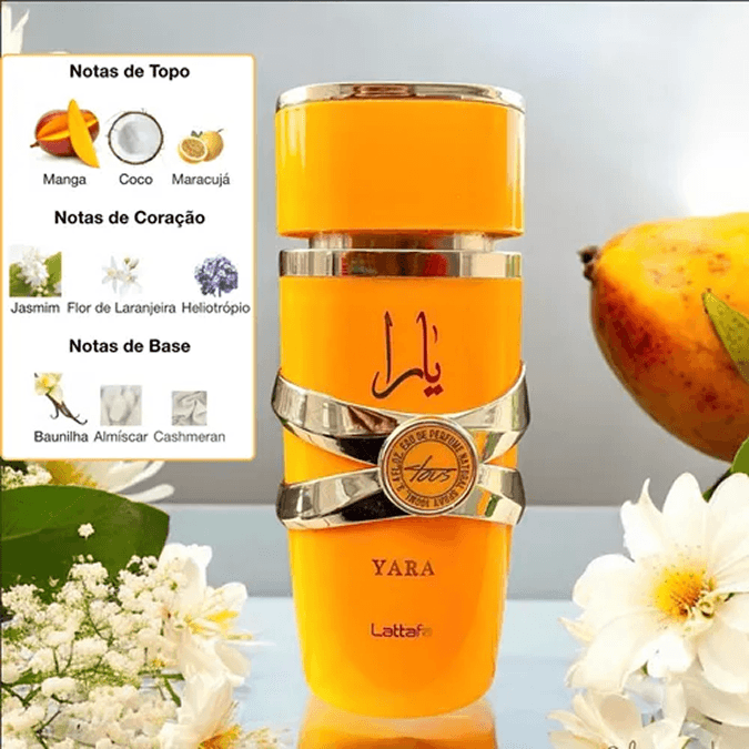 O “Yara Amarelo” geralmente se refere ao Yara Tous da marca árabe Lattafa, que é uma fragrância feminina com aroma tropical-cremoso. Ele é notável por suas notas de topo de manga, coco e maracujá, seguidas por um coração de jasmim, heliotrópio e flor de laranjeira, e uma base de baunilha, almíscar e cashmeran. A versão em óleo é conhecida por ter alta fixação e projeção, além de não conter álcool.